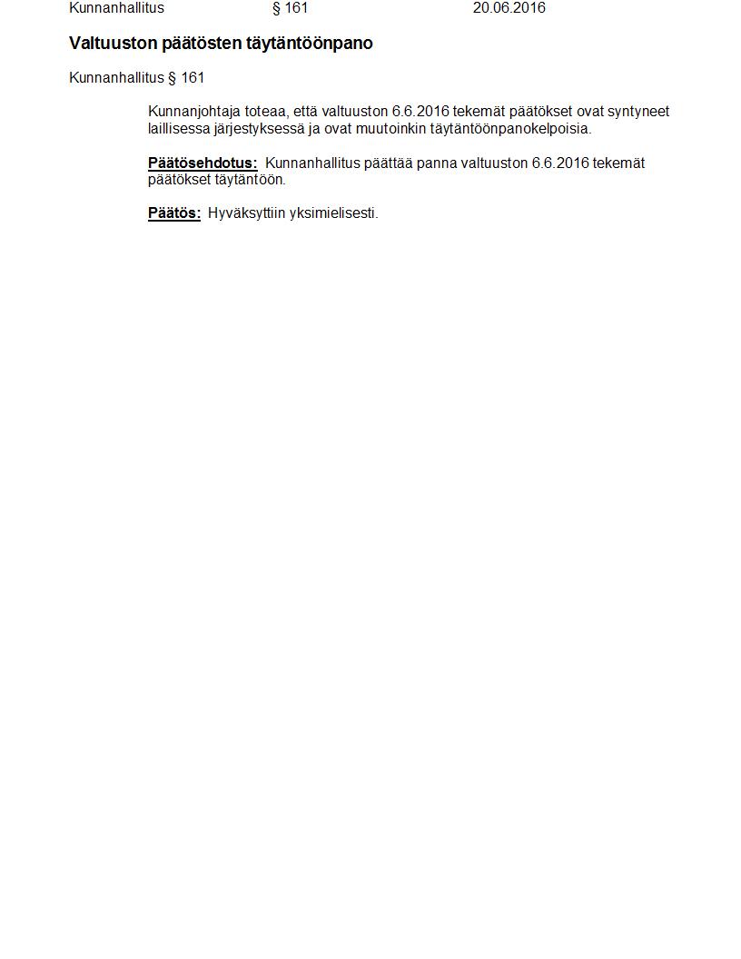 Pöytäkirja 20.06.2016 Pykälä 161