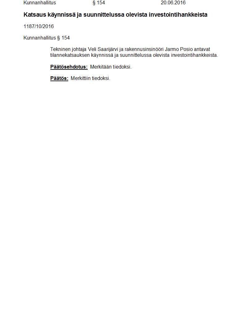Pöytäkirja 20.06.2016 Pykälä 154