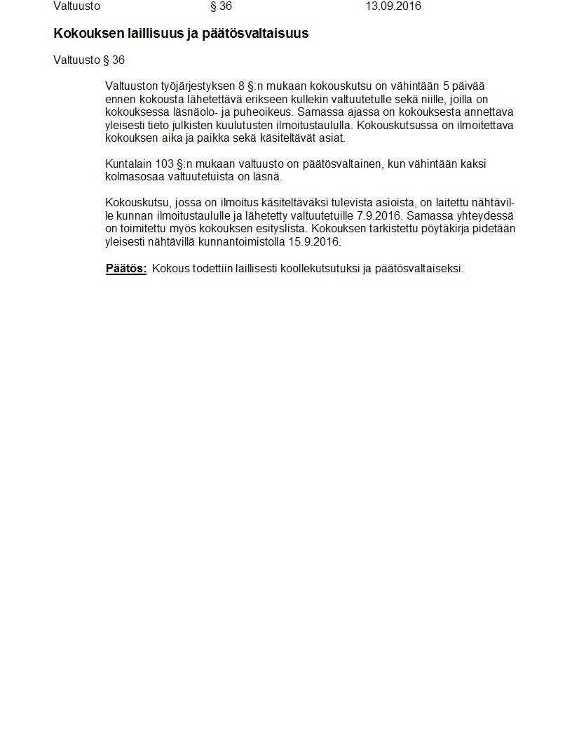 Pöytäkirja 13.09.2016 Pykälä 36
