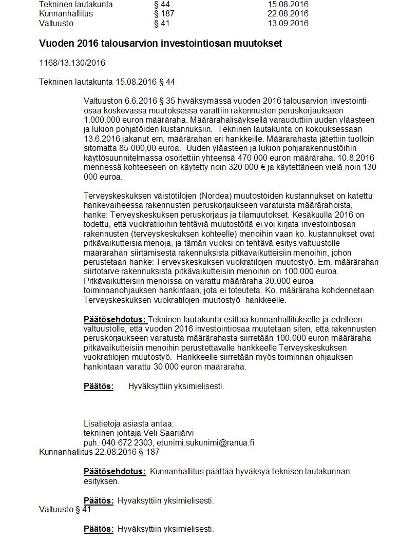 Pöytäkirja 13.09.2016 Pykälä 41