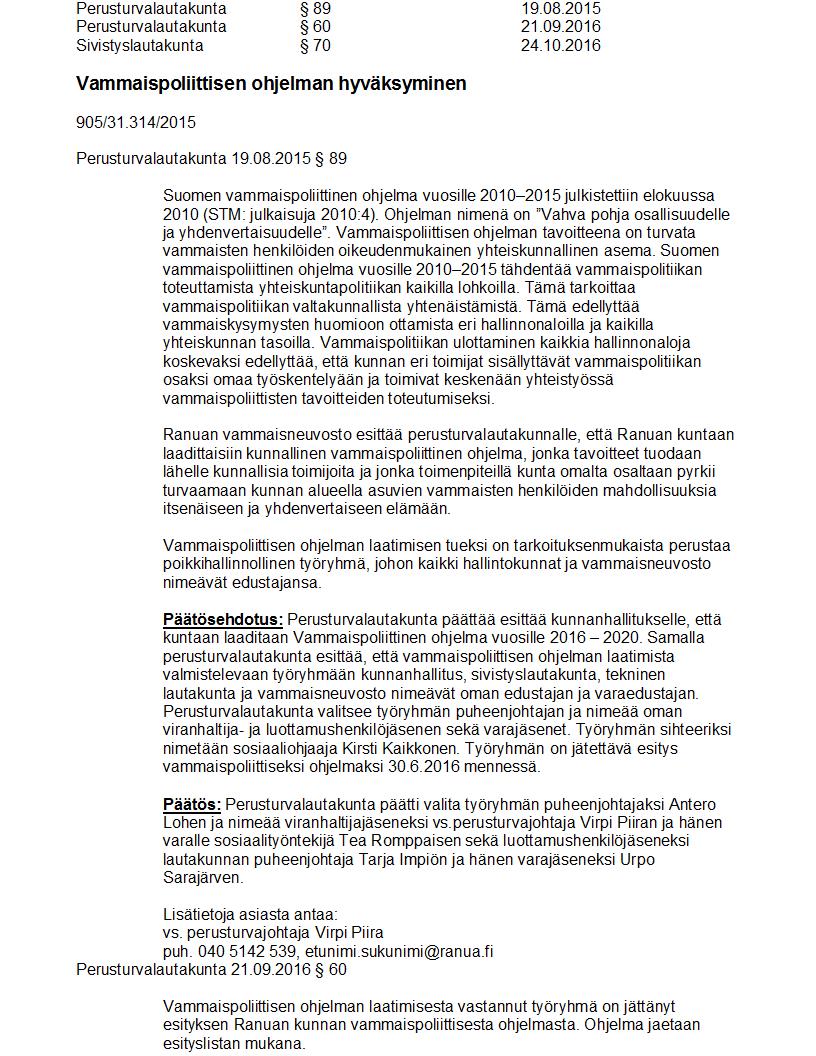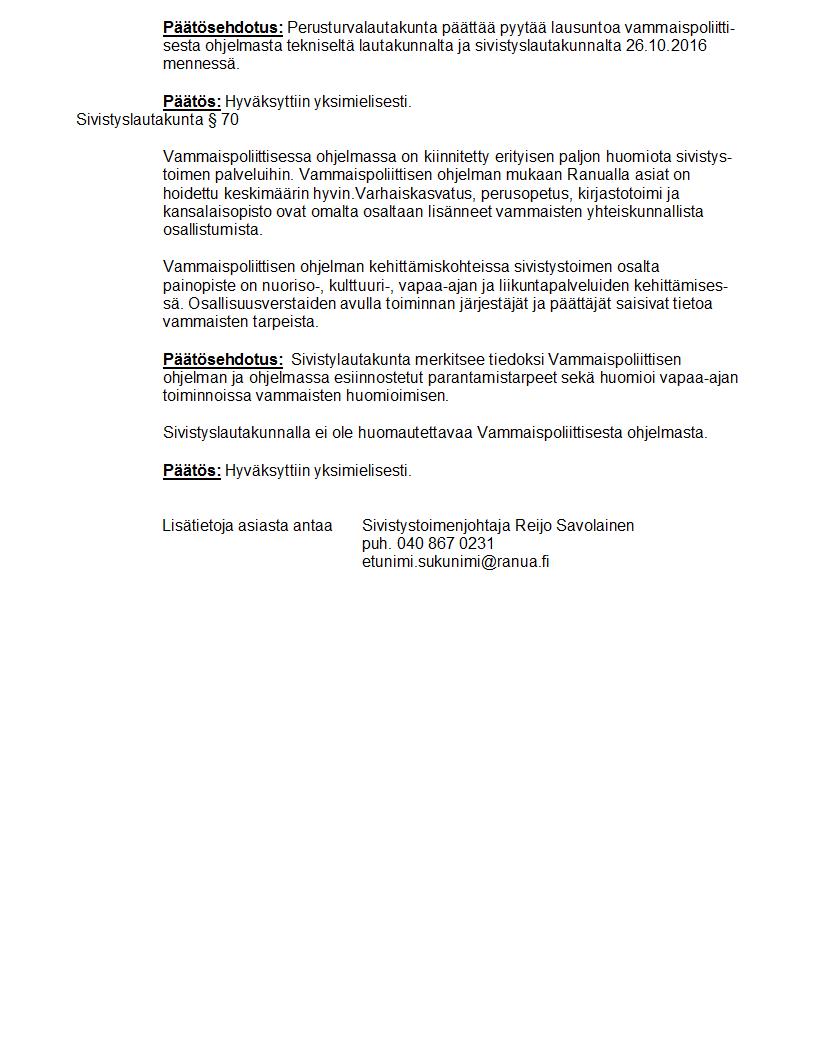 Pöytäkirja 24.10.2016 Pykälä 70