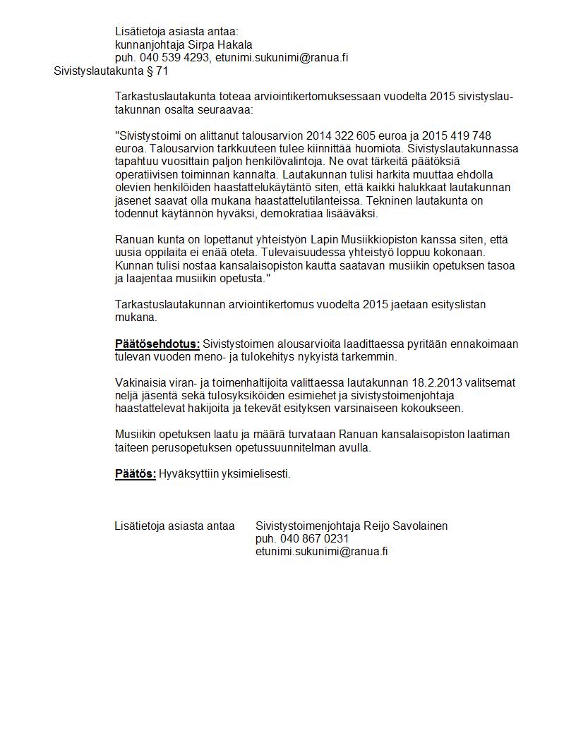 Pöytäkirja 24.10.2016 Pykälä 71