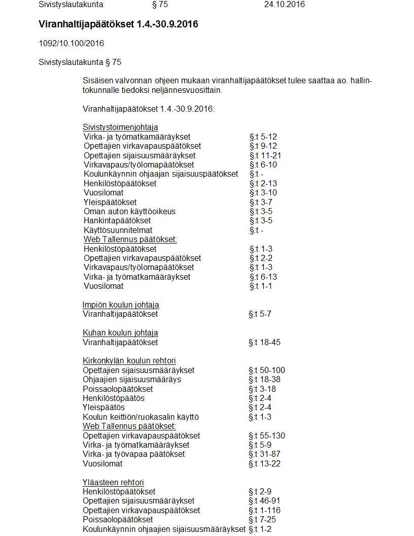 Pöytäkirja 24.10.2016 Pykälä 75