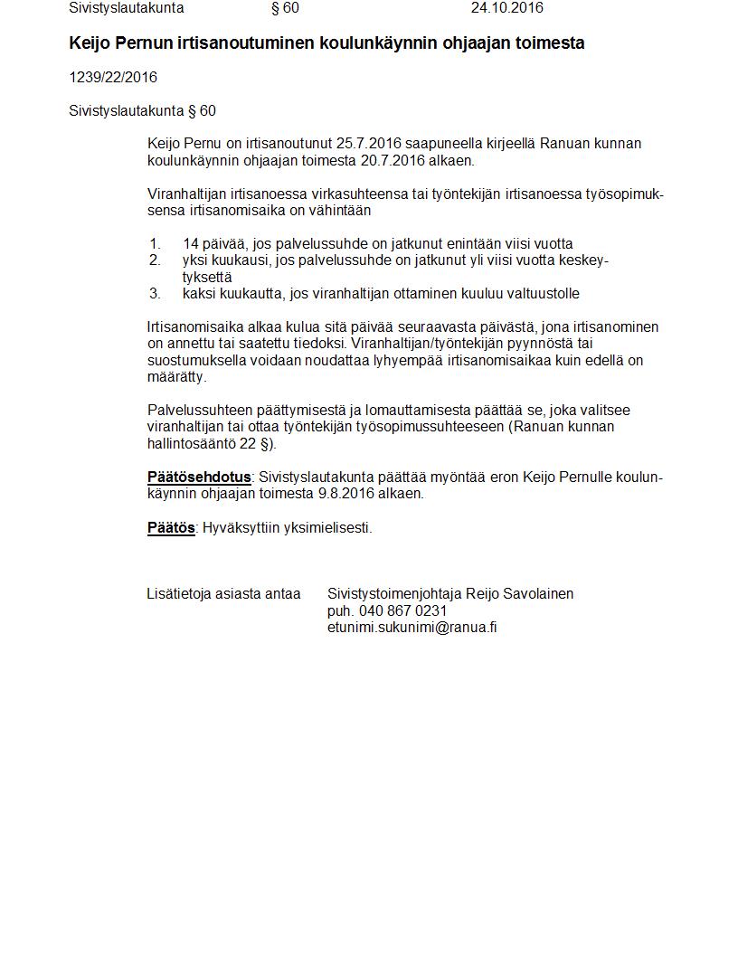 Pöytäkirja 24.10.2016 Pykälä 60
