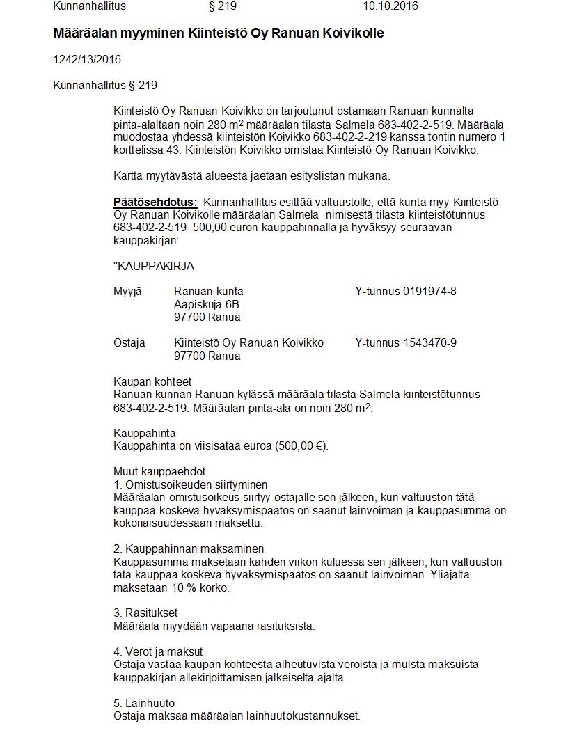 Pöytäkirja 10.10.2016 Pykälä 219
