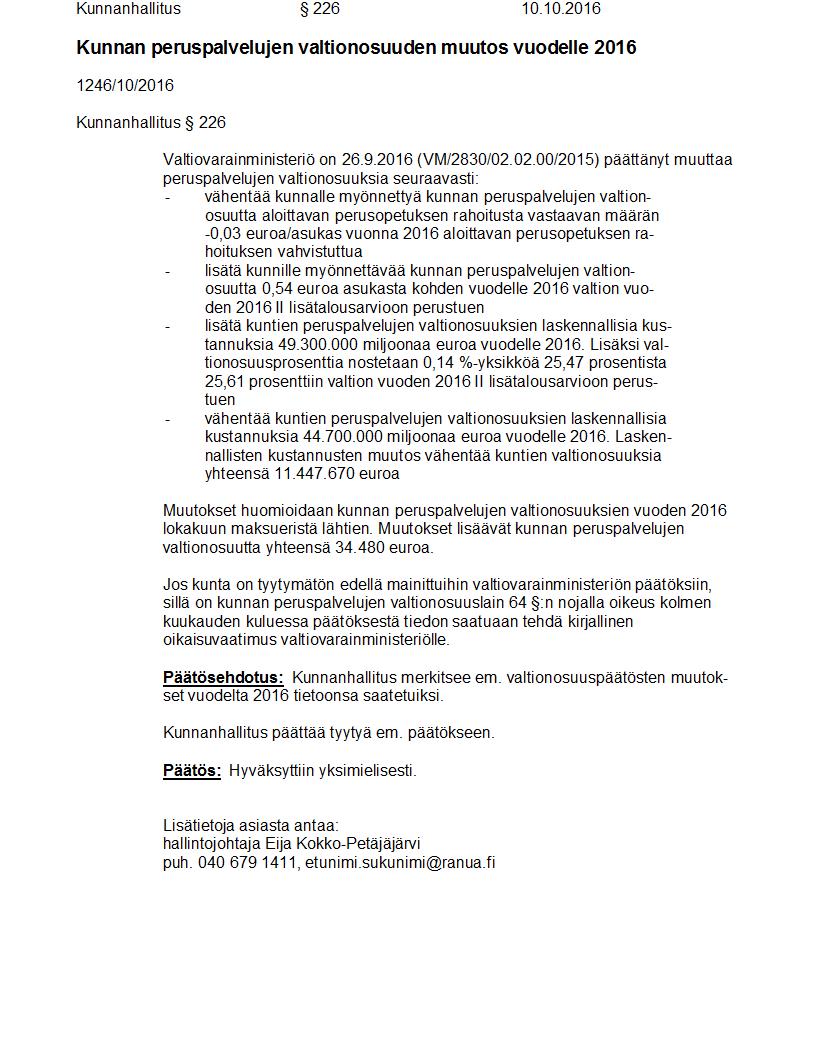 Pöytäkirja 10.10.2016 Pykälä 226