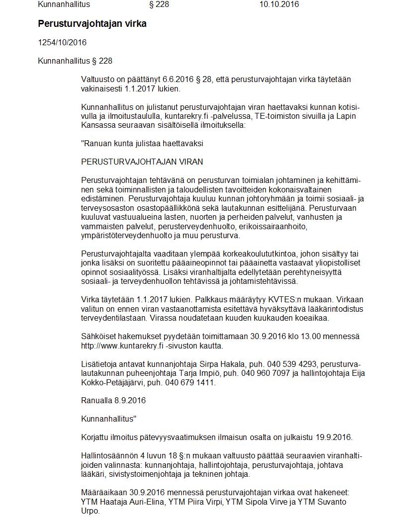 Pöytäkirja 10.10.2016 Pykälä 228