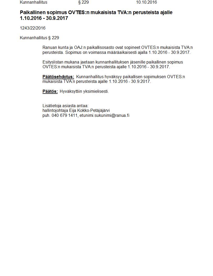 Pöytäkirja 10.10.2016 Pykälä 229