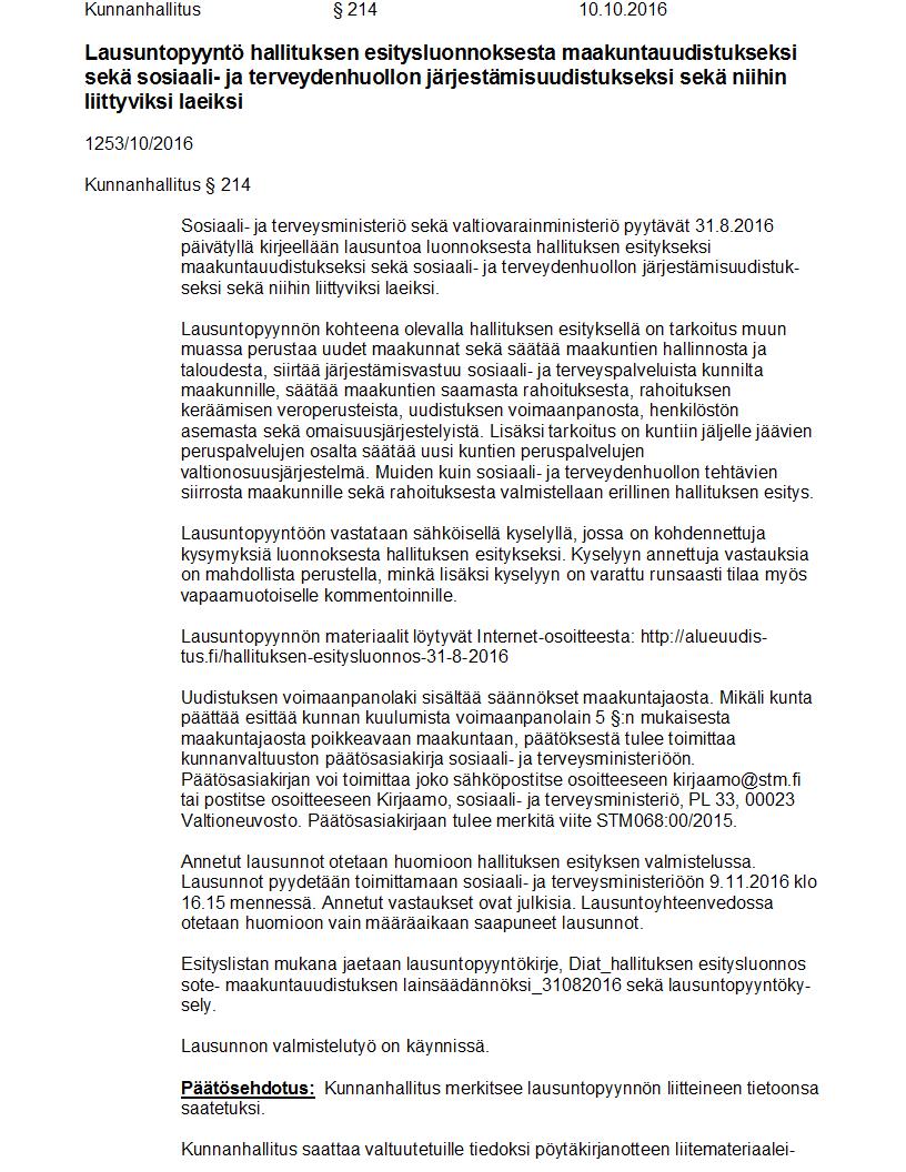 Pöytäkirja 10.10.2016 Pykälä 214