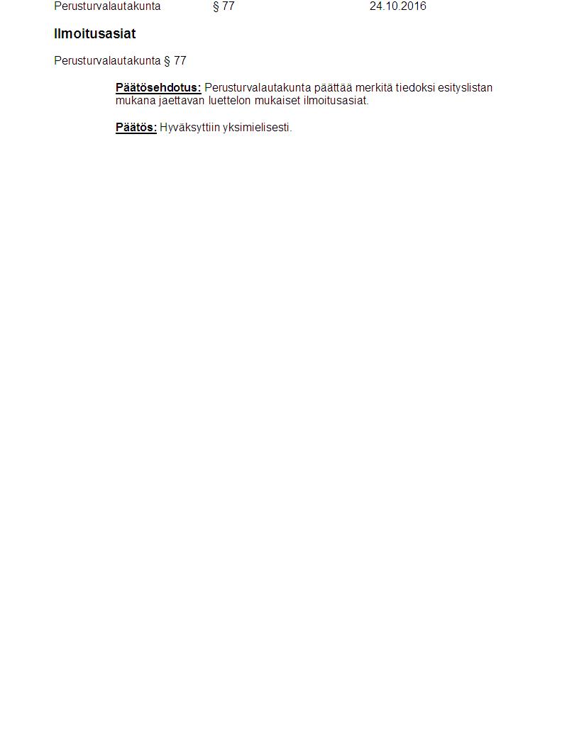 Pöytäkirja 24.10.2016 Pykälä 77