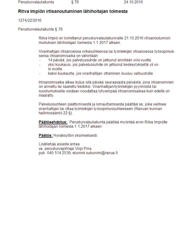 Pöytäkirja 24.10.2016 Pykälä 78