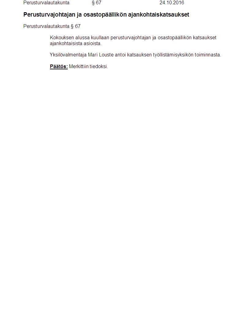 Pöytäkirja 24.10.2016 Pykälä 67
