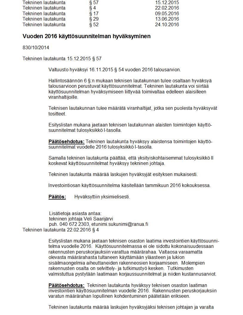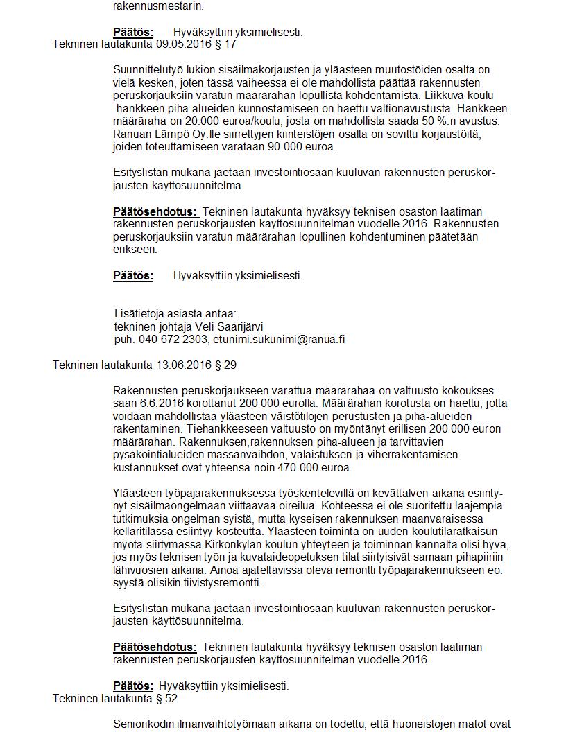 Pöytäkirja 24.10.2016 Pykälä 52