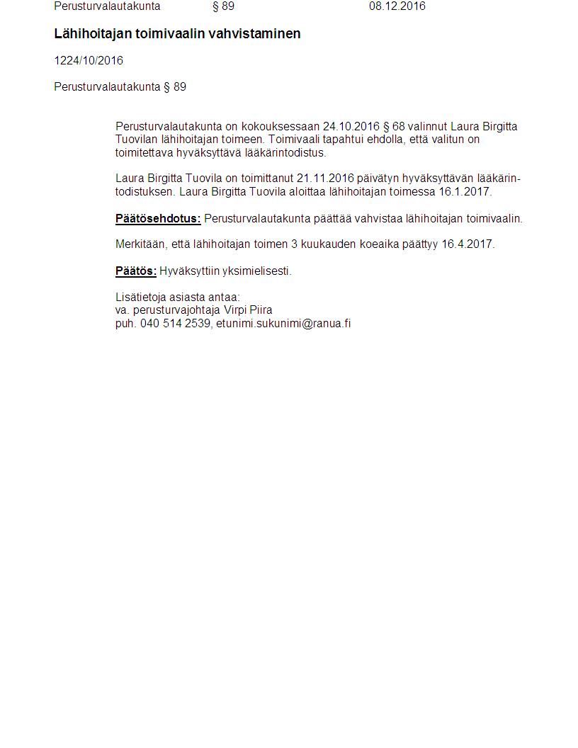 Pöytäkirja 08.12.2016 Pykälä 89