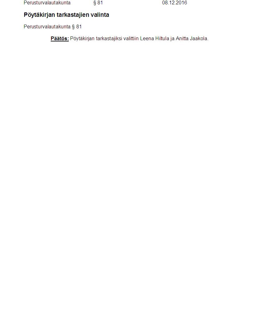 Pöytäkirja 08.12.2016 Pykälä 81