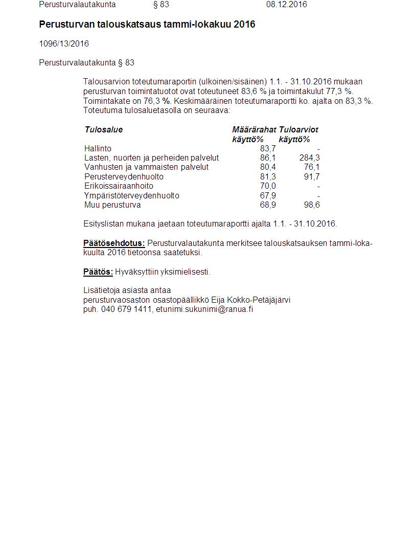 Pöytäkirja 08.12.2016 Pykälä 83