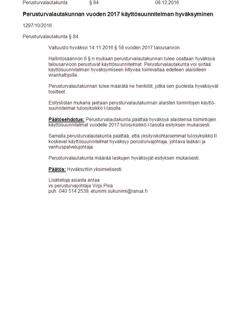 Pöytäkirja 08.12.2016 Pykälä 84