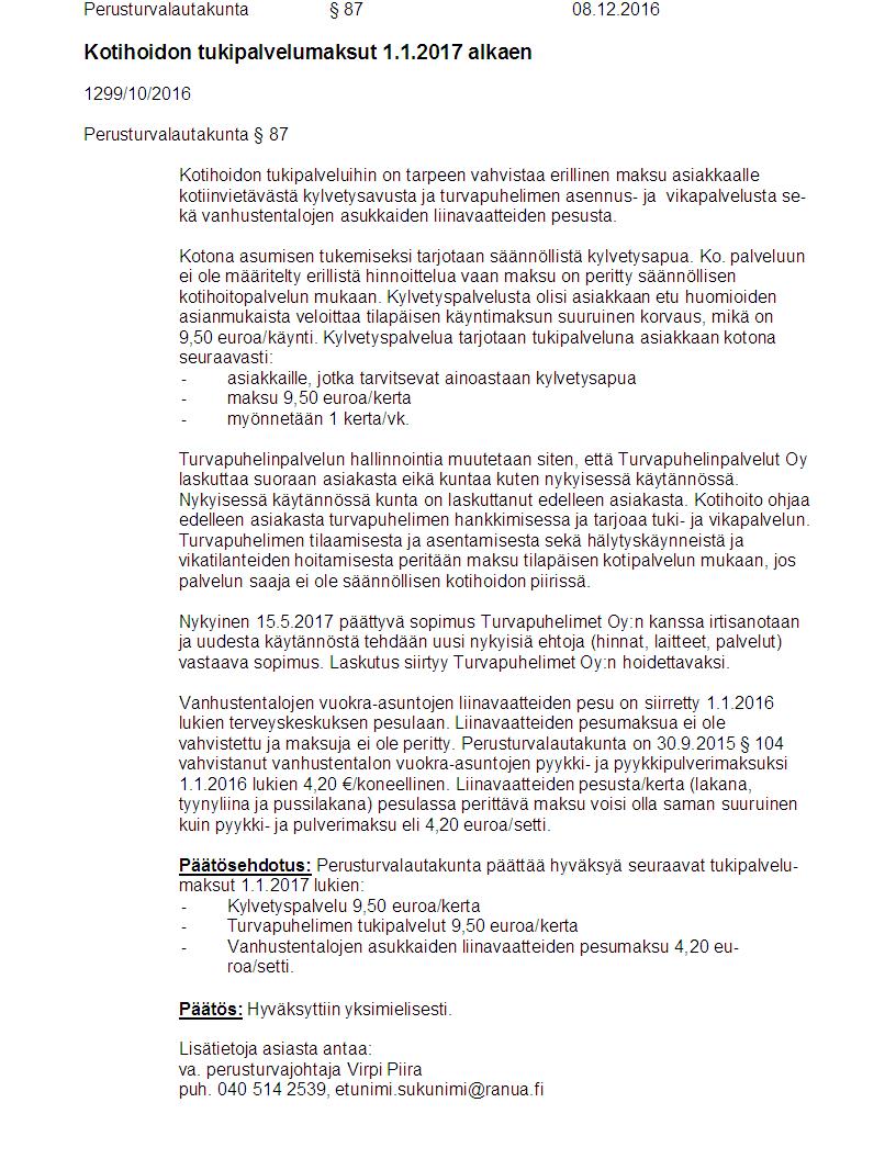 Pöytäkirja 08.12.2016 Pykälä 87