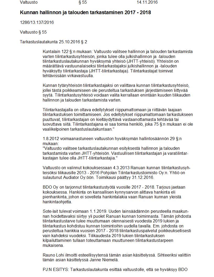 Pöytäkirja 14.11.2016 Pykälä 55