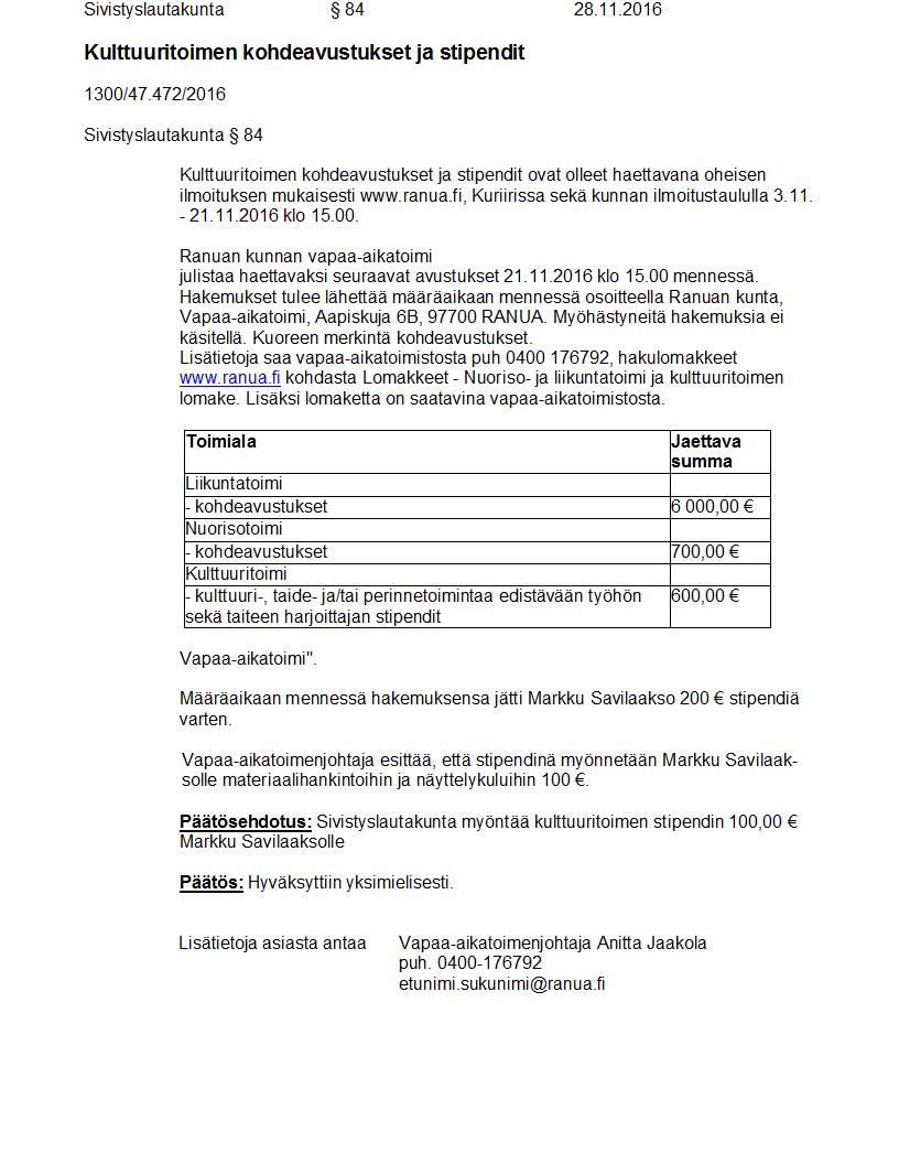 Pöytäkirja 28.11.2016 Pykälä 84