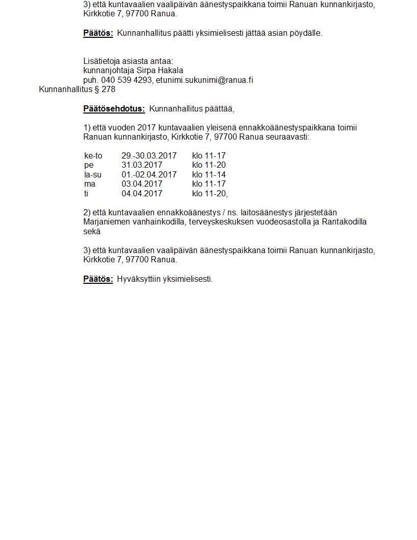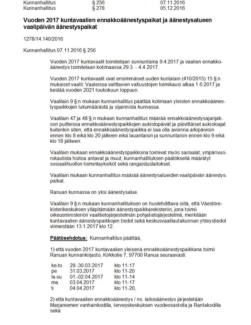 Pöytäkirja 05.12.2016 Pykälä 278