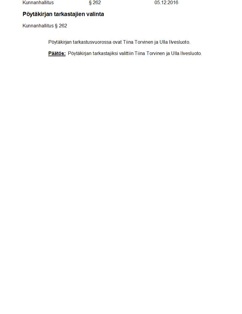 Pöytäkirja 05.12.2016 Pykälä 262