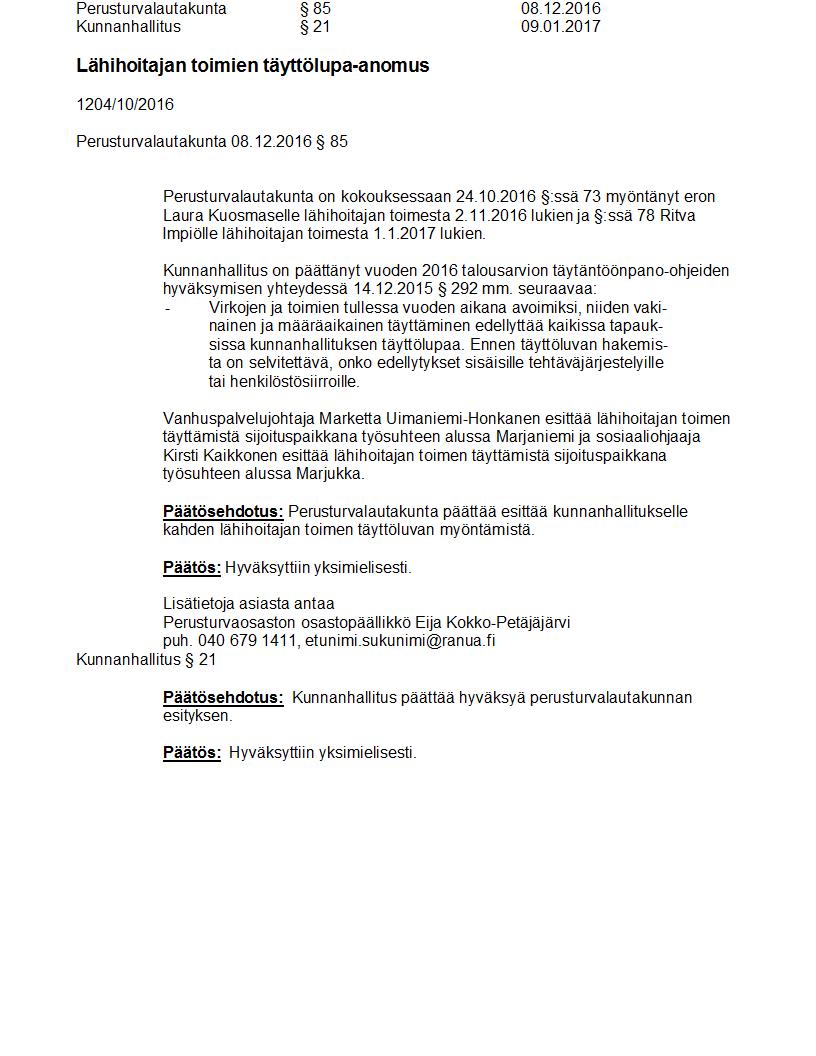 Pöytäkirja 09.01.2017 Pykälä 21