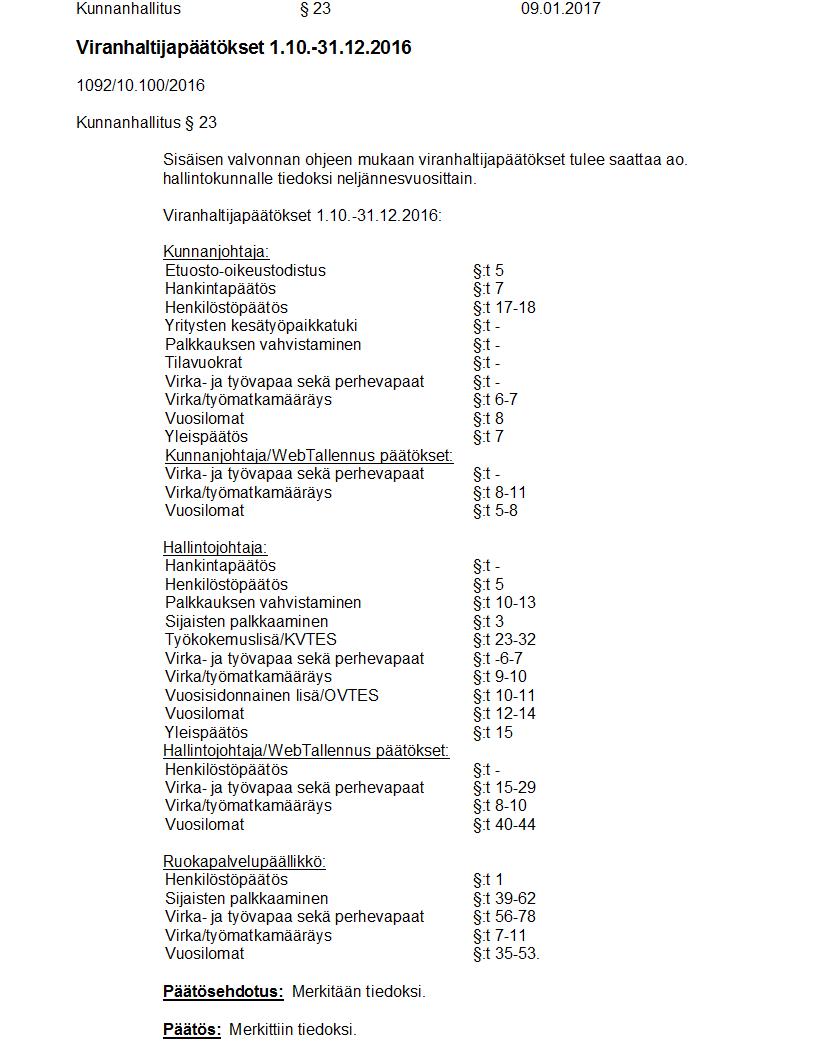 Pöytäkirja 09.01.2017 Pykälä 23