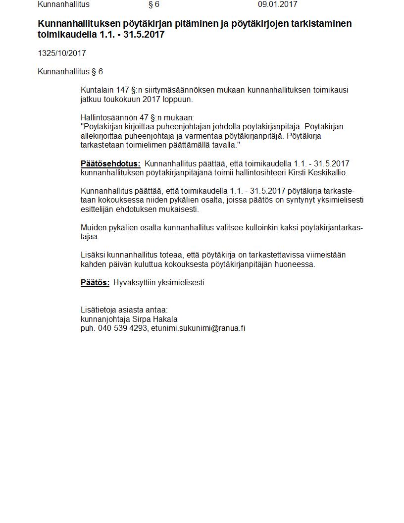 Pöytäkirja 09.01.2017 Pykälä 6