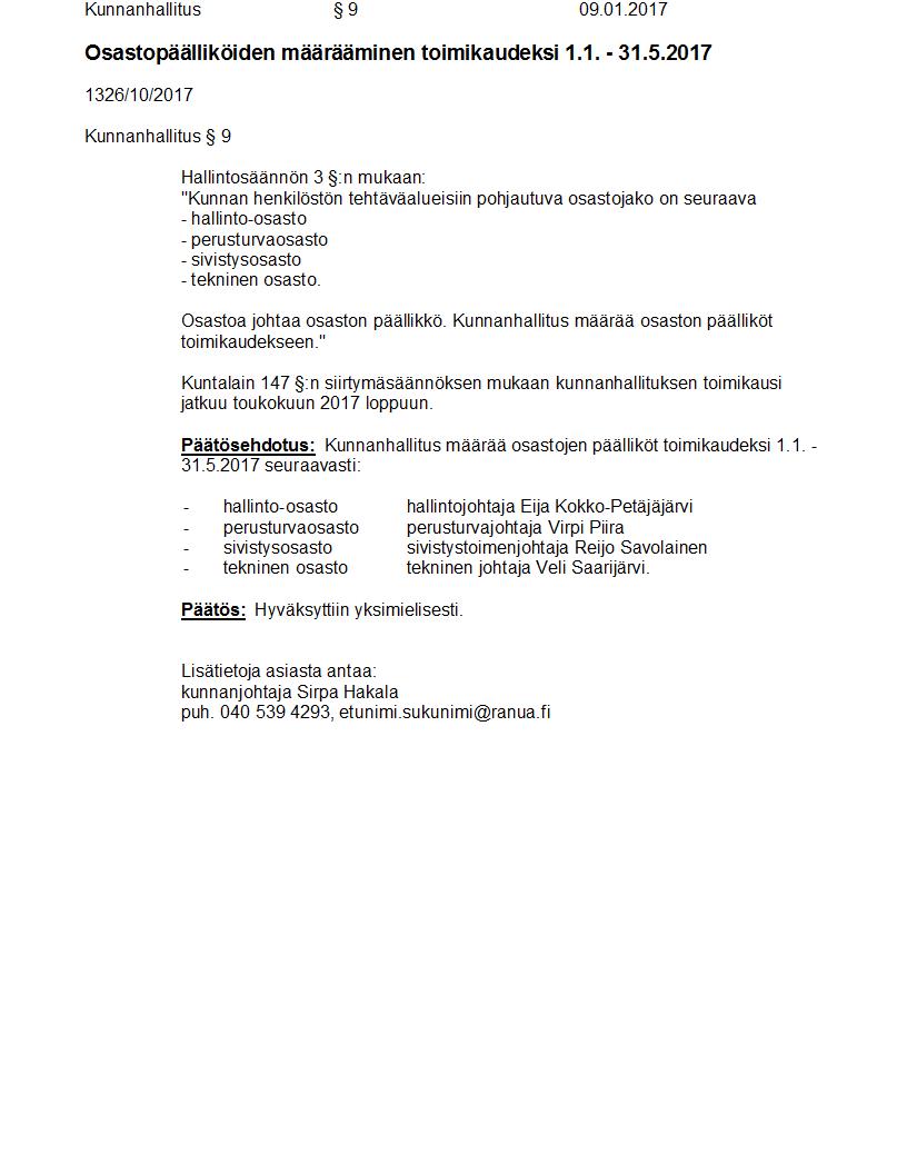 Pöytäkirja 09.01.2017 Pykälä 9