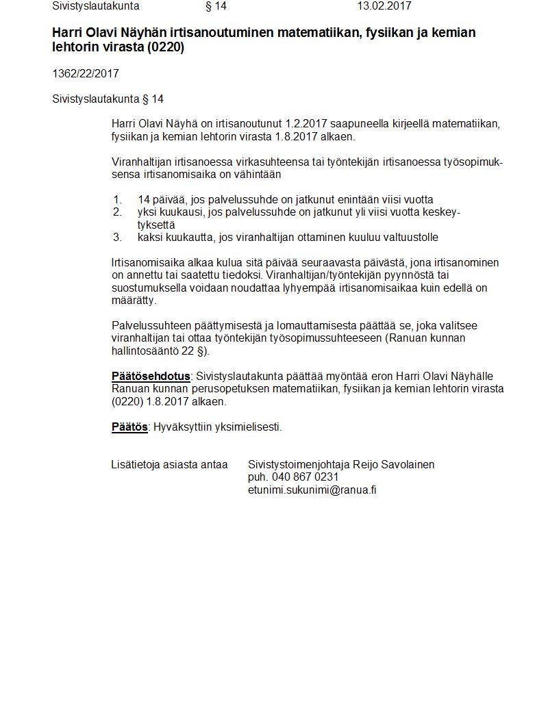 Pöytäkirja 13.02.2017 Pykälä 14