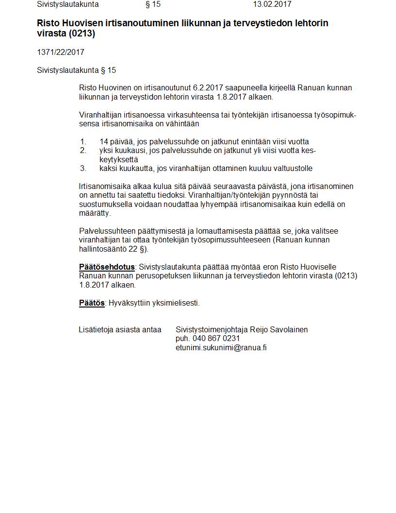 Pöytäkirja 13.02.2017 Pykälä 15