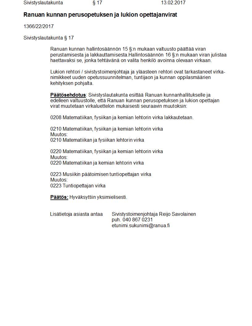 Pöytäkirja 13.02.2017 Pykälä 17