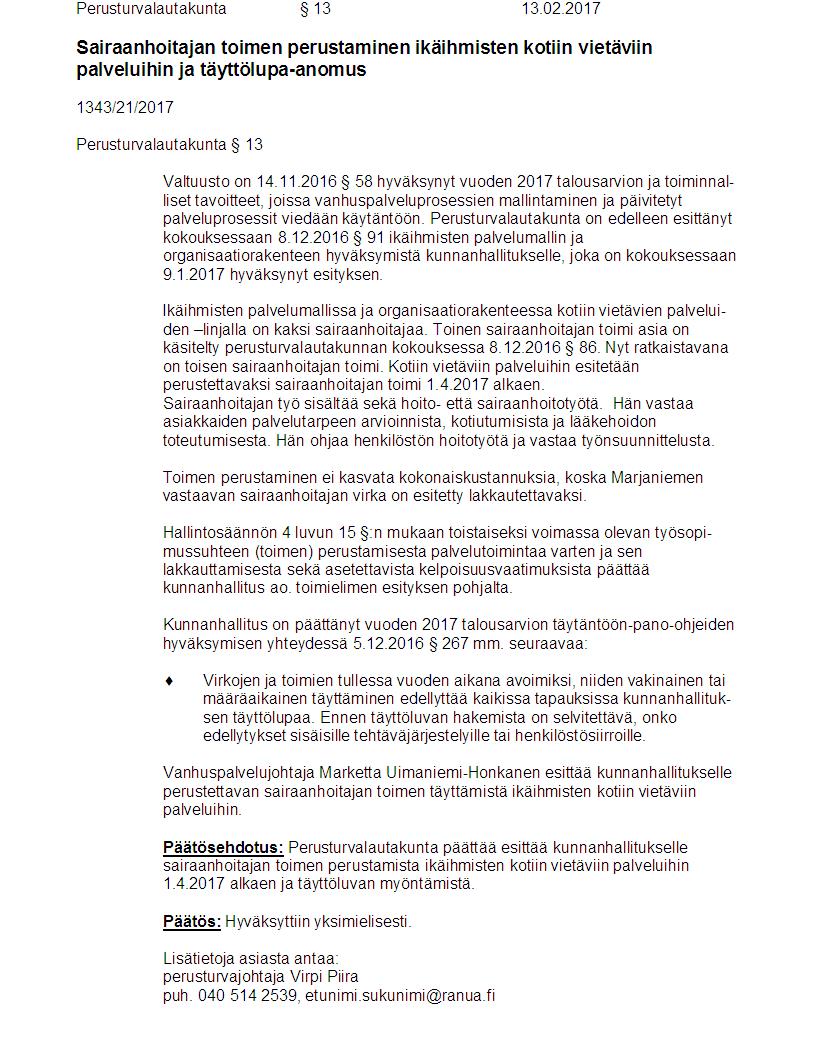 Pöytäkirja 13.02.2017 Pykälä 13