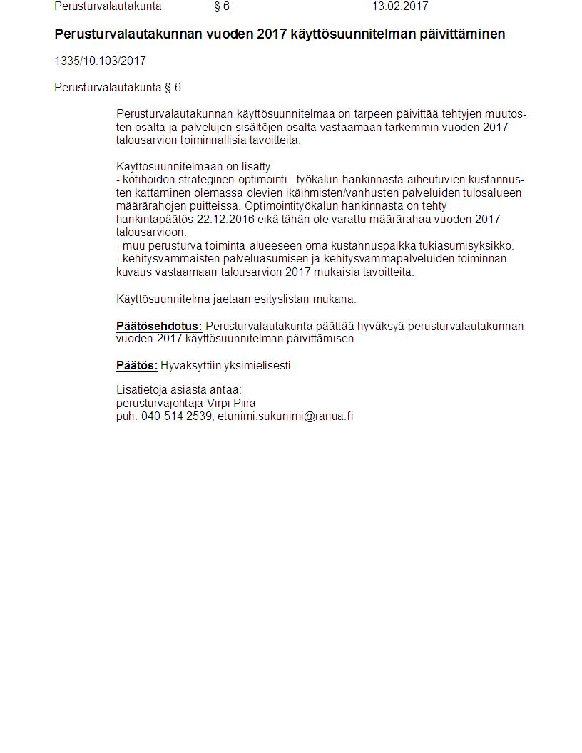 Pöytäkirja 13.02.2017 Pykälä 6
