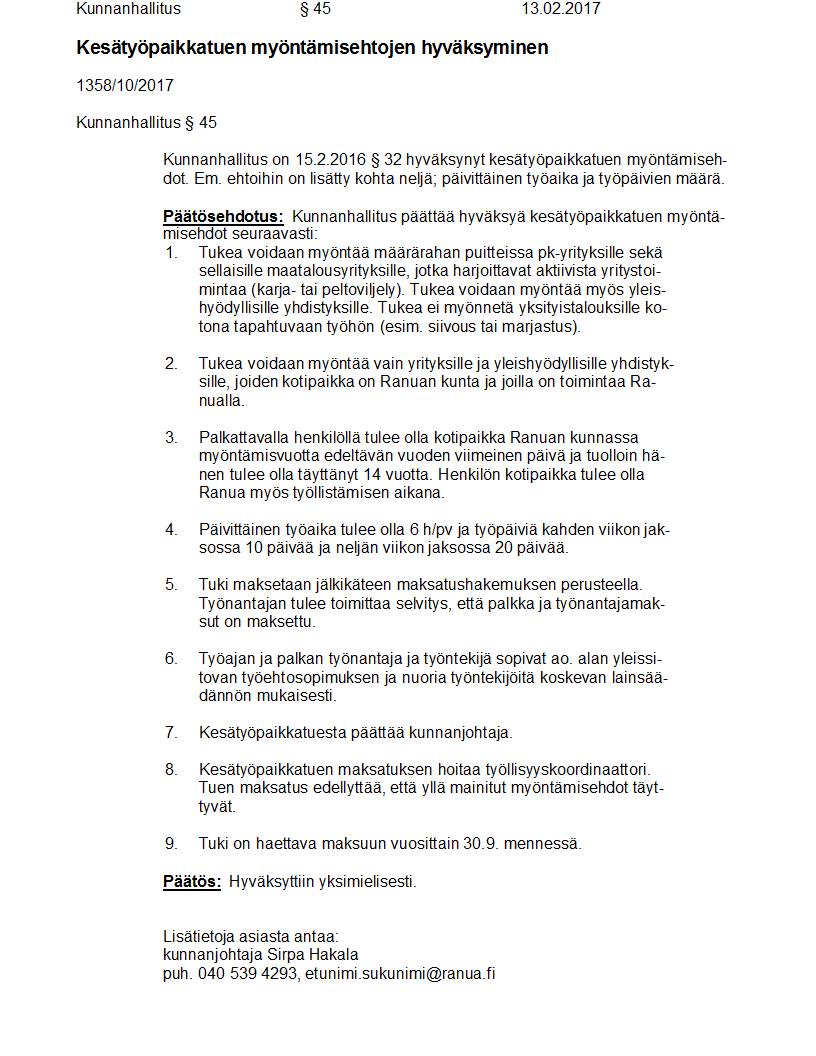 Pöytäkirja 13.02.2017 Pykälä 45
