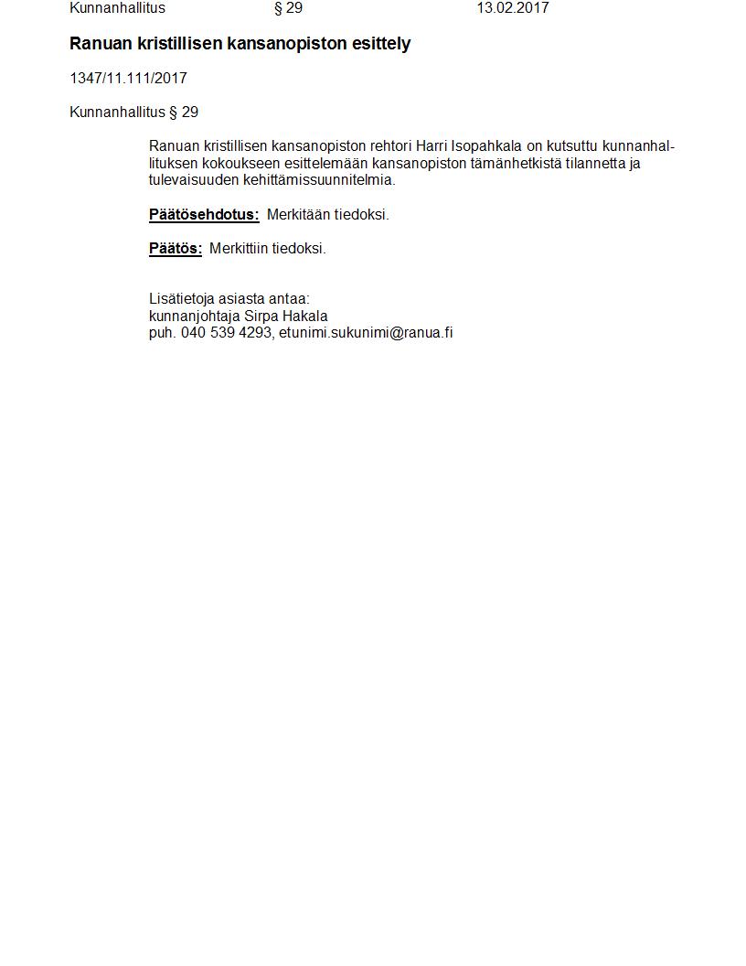Pöytäkirja 13.02.2017 Pykälä 29