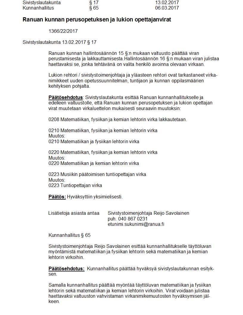 Pöytäkirja 06.03.2017 Pykälä 65