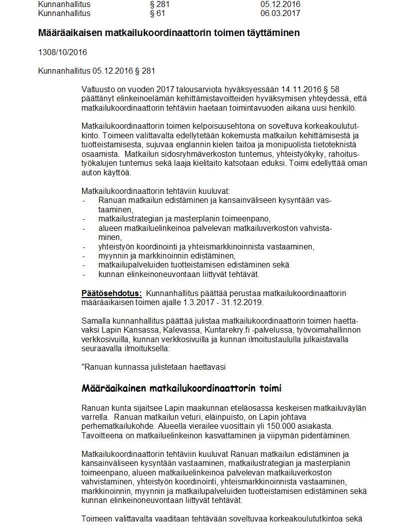 Pöytäkirja 06.03.2017 Pykälä 61