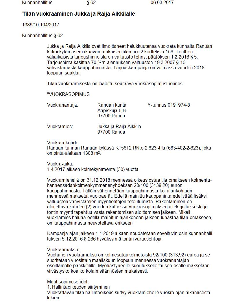 Pöytäkirja 06.03.2017 Pykälä 62