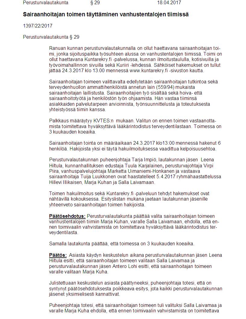 Pöytäkirja 18.04.2017 Pykälä 29