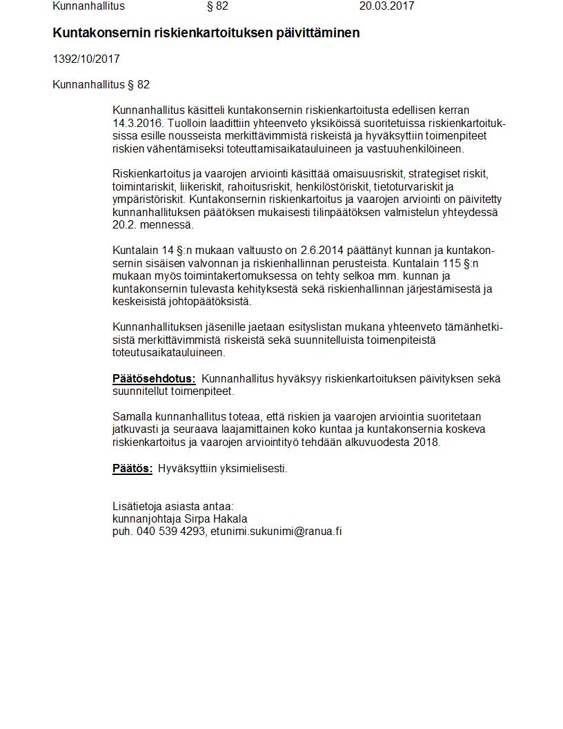 Pöytäkirja 20.03.2017 Pykälä 82