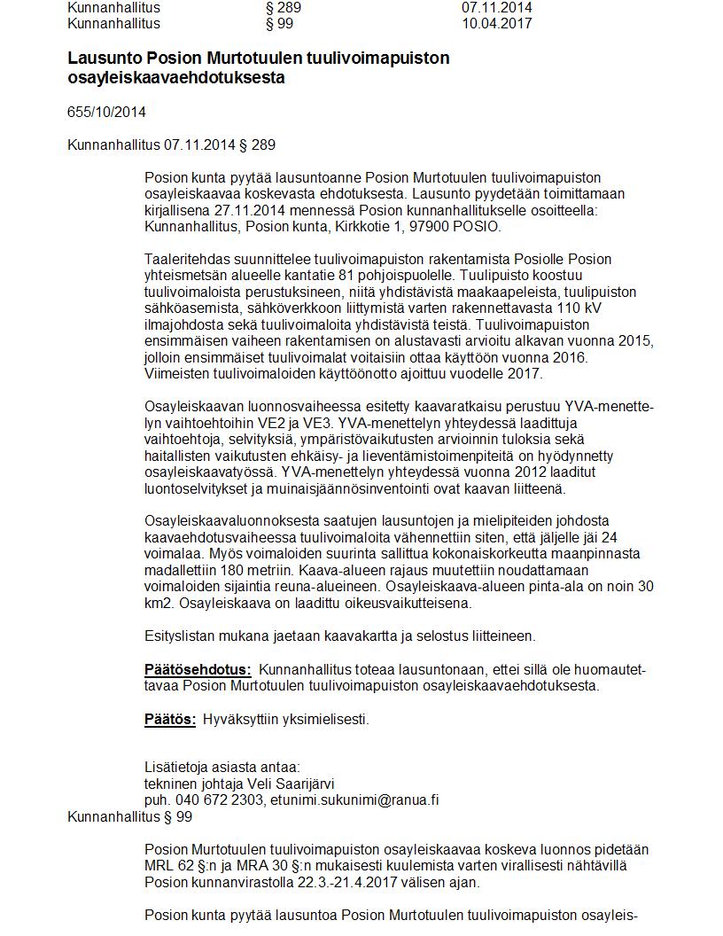 Pöytäkirja 10.04.2017 Pykälä 99
