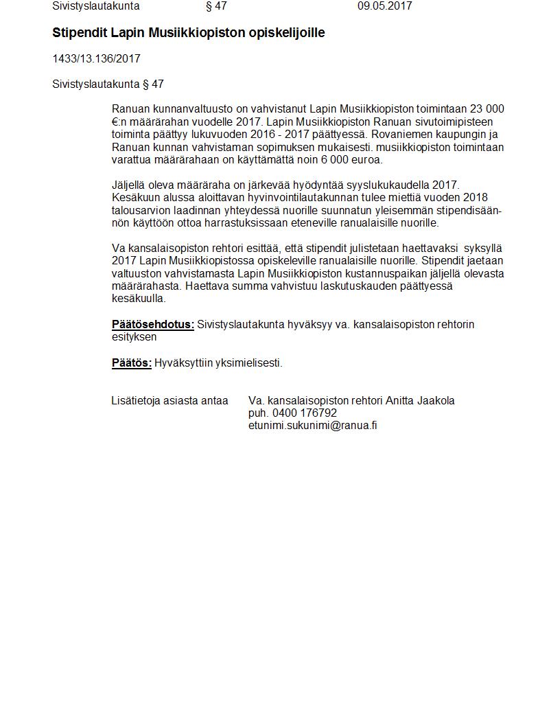Pöytäkirja 09.05.2017 Pykälä 47