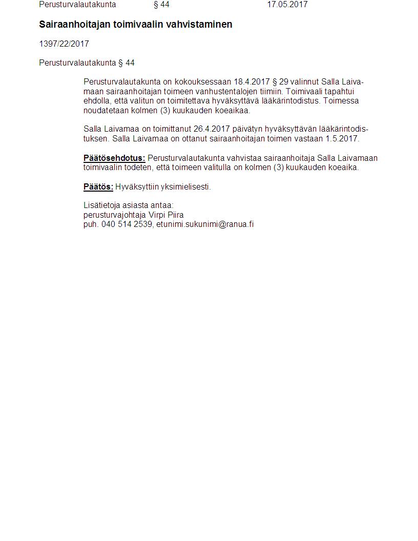 Pöytäkirja 17.05.2017 Pykälä 44