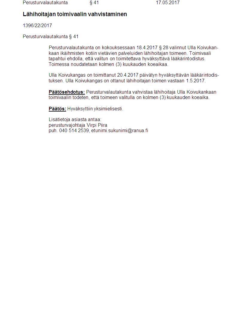 Pöytäkirja 17.05.2017 Pykälä 41