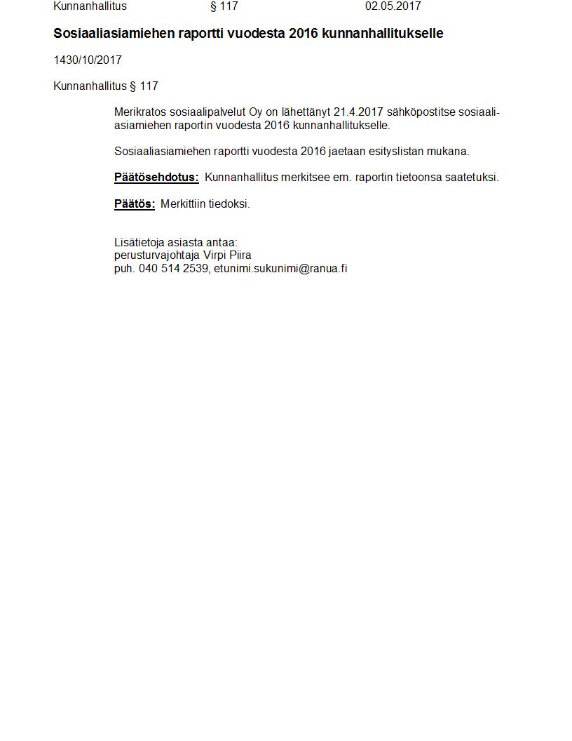 Pöytäkirja 02.05.2017 Pykälä 117