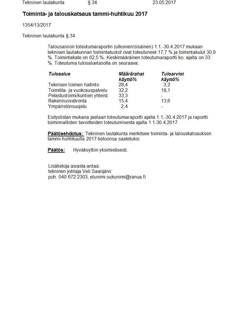 Pöytäkirja 23.05.2017 Pykälä 34
