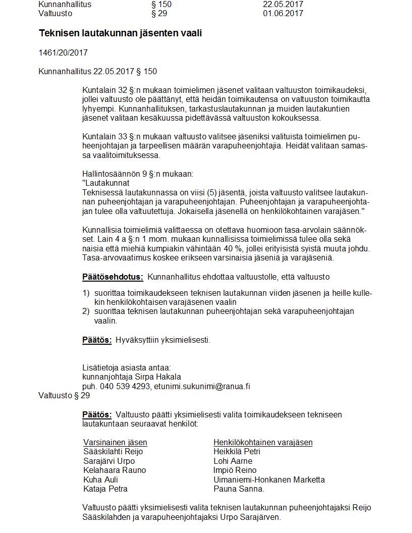 Pöytäkirja 01.06.2017 Pykälä 29