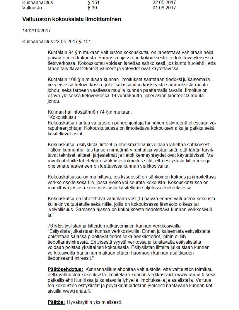 Pöytäkirja 01.06.2017 Pykälä 30